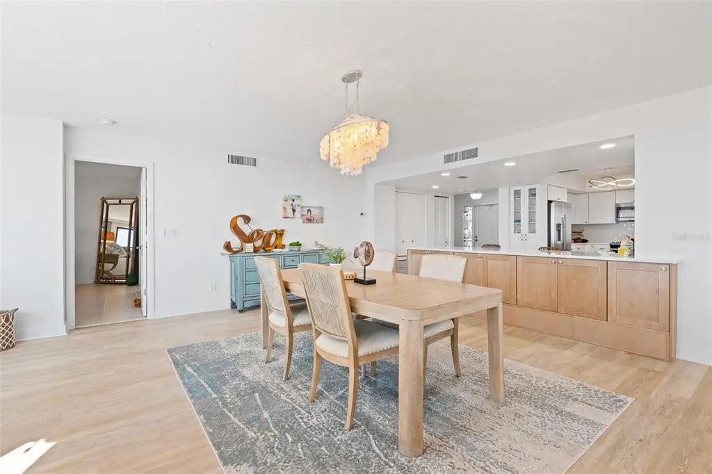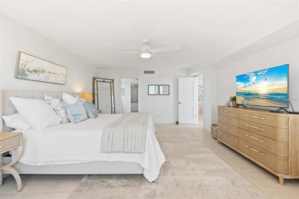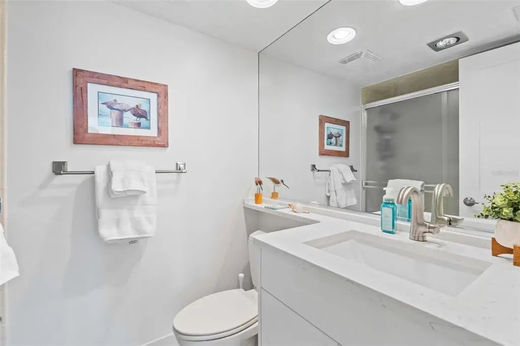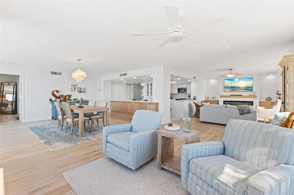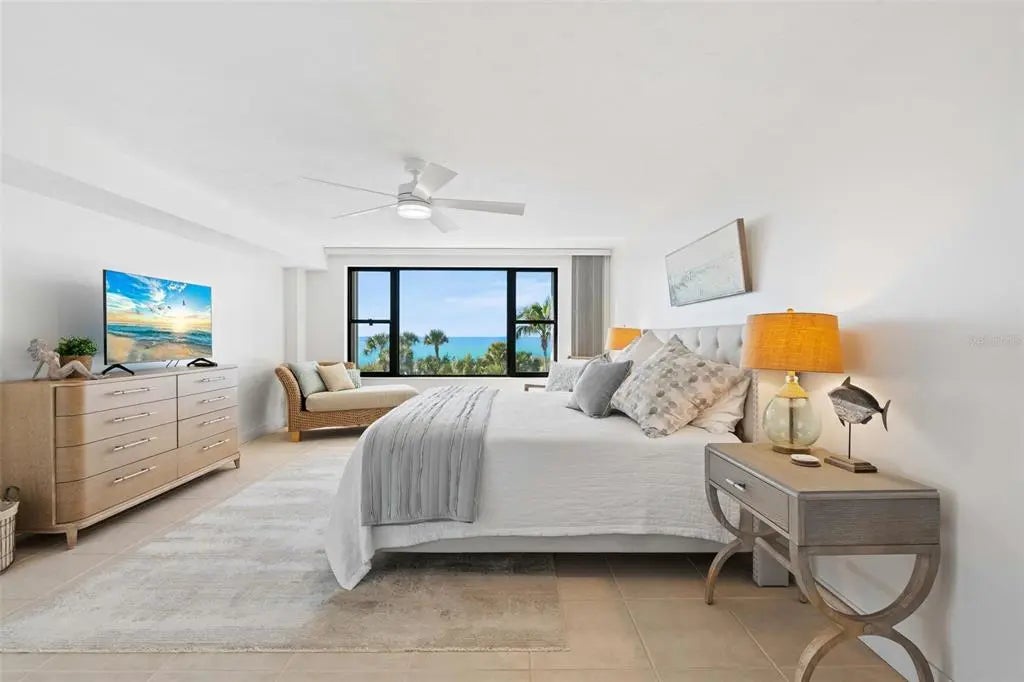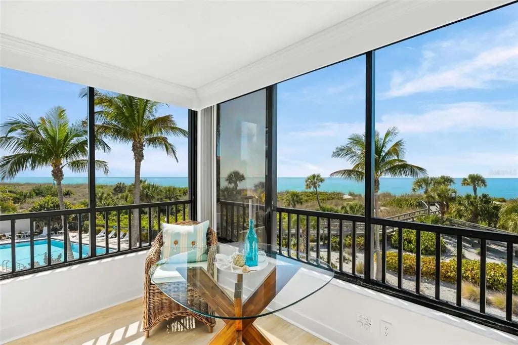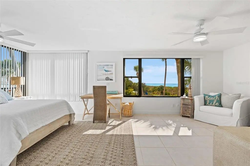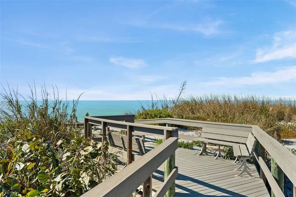 Rarely available at Hidden Lagoon Beach Club, this exceptional turnkey furnished residence offers breathtaking panoramic gulf views from nearly every angle. Wake to the sound of gentle waves, savor the serenity of a secluded beach, and unwind with unforgettable sunset skies - this is coastal living at its finest. Beautifully furnished and thoughtfully renovated, the expansive 2,730-square-foot condo features an expertly redesigned eat-in kitchen and an open-concept floor plan that maximizes both space and natural light. Custom built-in cabinetry frames a striking shiplap accent wall with an inviting electric fireplace, mantel, and TV - perfect for those relaxed evenings. The home includes two generously sized primary suites, each with updated en-suite baths and large walk-in closets equipped with custom organizer systems. Neutral luxury vinyl plank and tile flooring run throughout, creating a clean, coastal elegance. Offered turnkey furnished, excluding personal items, and complemented by an oversized private two-car garage - a rare and valuable bonus. Hidden Lagoon Beach Club is an intimate, gated community of just 24 residences, ideal for those seeking privacy away from the crowds. Amenities include a heated pool with lockers, tennis court, kayak/canoe launch, tranquil lagoon views, and a charming butterfly garden, along with private gated beach access. Conveniently located just minutes from Siesta Key’s renowned dining, shopping, and marinas, this extraordinary home truly offers the best of the best. Schedule your private showing today and experience it for yourself.