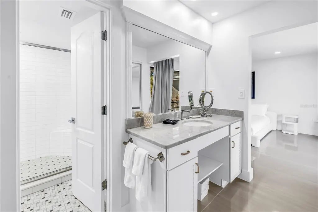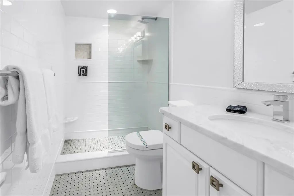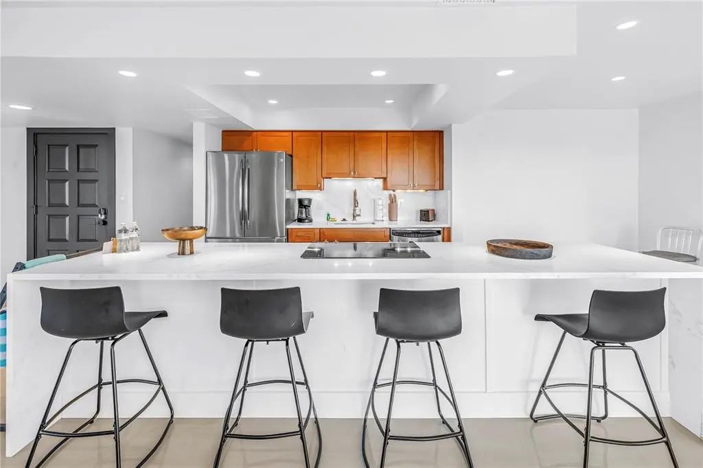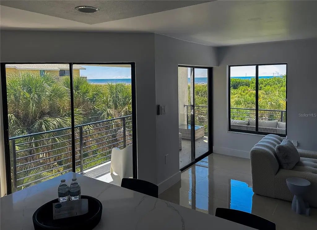 Welcome to 450 Beach Rd Unit 4, a rare opportunity to own a completely remodeled 2025 coastal retreat just steps from the sugar-sand shoreline of world-famous Siesta Key Beach. Located within an intimate five-unit complex, this 3 bedroom, 2 bathroom condominium offers deeded beach access, sweeping Gulf views, and weekly rental flexibility. The interior was fully renovated in 2025 and features a bright, open layout designed for effortless coastal living, complete with sleek tile flooring, marble countertops, stainless steel appliances, and a seamless flow between the kitchen and living areas. Gulf views can be enjoyed from the kitchen, while the private balcony provides the perfect setting for morning coffee or sunset unwinding. Additional conveniences include one open parking space plus an enclosed one-car garage. Recent exterior improvements to the building and grounds include fresh paint, modern balcony railings, Italian terrazzo tile, contemporary privacy fencing, and luxury outdoor lighting, enhancing the curb appeal of this boutique property. Residents and guests enjoy a well-maintained shared pool and an entertainment area with a ping pong table, cornhole, and community poolside grilling area. Just a short stroll to Siesta Key Village, this property offers immediate access to dining, shopping, and nightlife while maintaining a private, resort-style atmosphere. Ideal as a full-time residence, second home, or high-performing investment, this property blends location, luxury, and income potential.