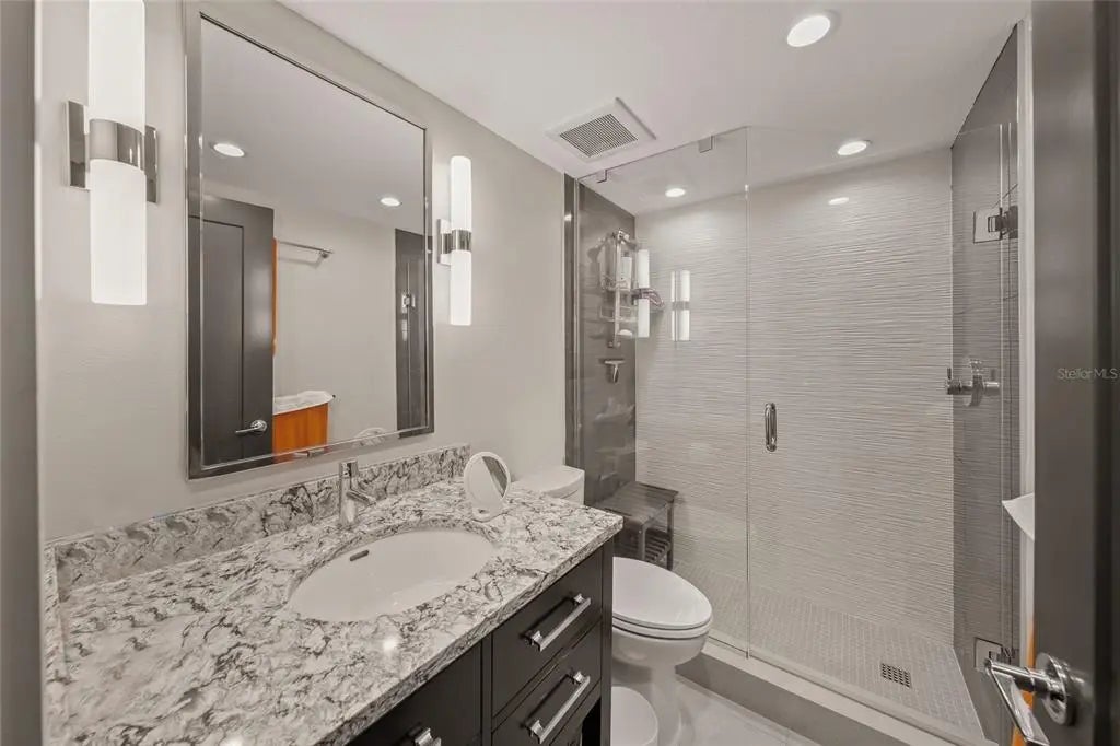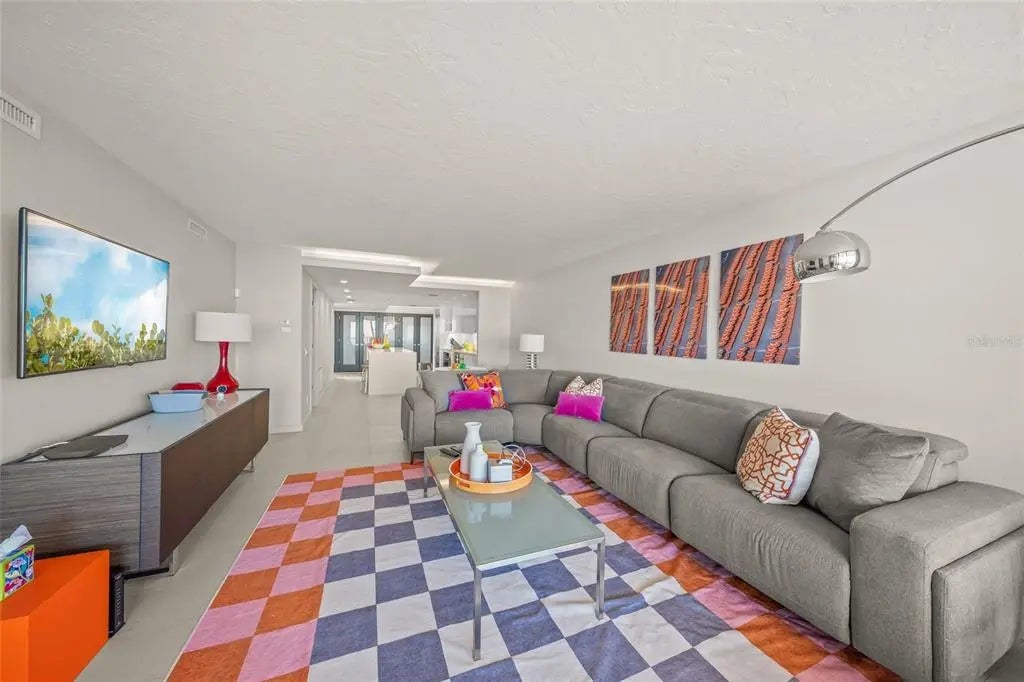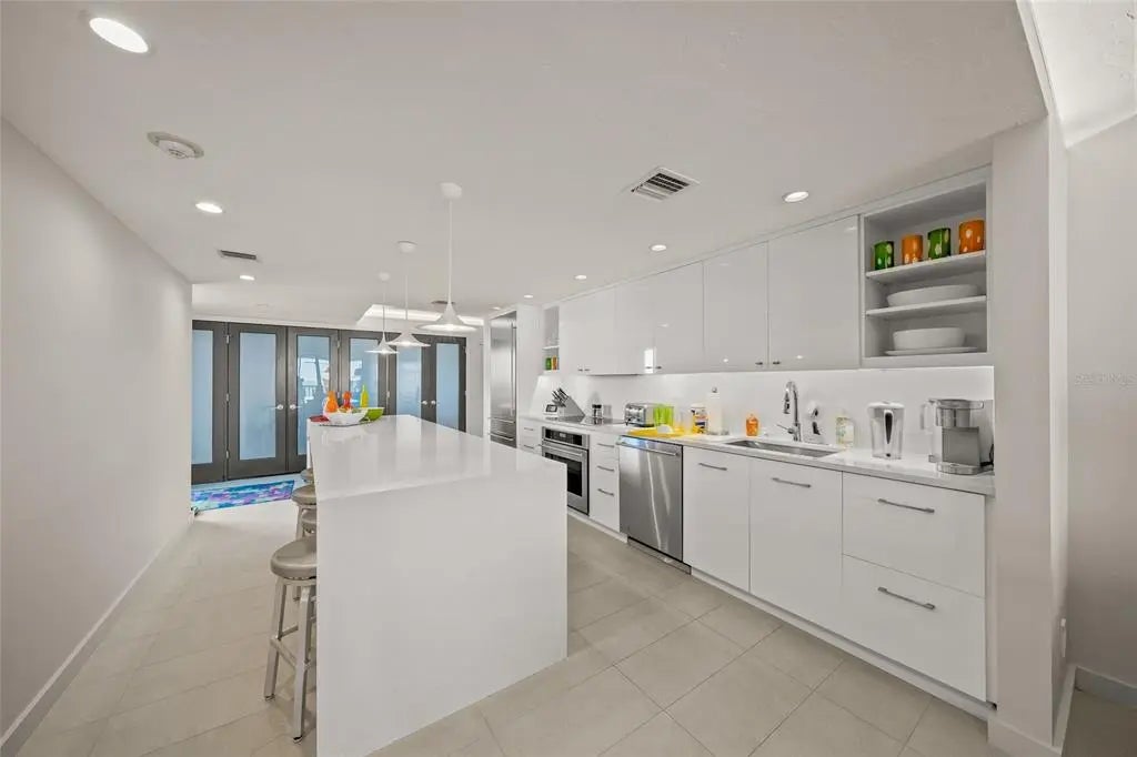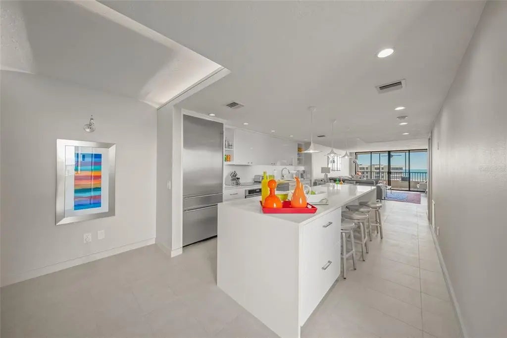 Poised above the world-famous quartz sands of Siesta Key, this penthouse-level residence delivers a front-row seat to the Gulf of Mexico—where breathtaking beach views, refined modern design, and resort-style living come together in one extraordinary coastal retreat. Welcome to 5750 Midnight Pass Road, Unit #704, a top-floor, move-in-ready condominium located within the prestigious Gulf & Bay Club. From the moment you enter, sweeping Gulf and shoreline vistas draw you through the open living space and out to the private balcony—an idyllic setting for morning coffee, sunset cocktails, and endless coastal breezes. The interior has been thoughtfully and completely remodeled to reflect today’s most sought-after contemporary coastal aesthetic. Sleek Durastone porcelain tile flooring, solid core doors, plantation shutters, and crisp architectural lines create a polished, sophisticated atmosphere throughout. The chef-inspired kitchen is both stylish and functional, featuring white cabinetry, quartz countertops, built-in GE Monogram stainless appliances, recessed lighting, and statement pendants illuminating an oversized island with seating—perfect for entertaining against a backdrop of turquoise Gulf waters. The open-concept living and dining areas are flooded with natural light and designed to maximize the penthouse perspective. A versatile entry-side closet with a window offers flexibility as a potential workspace or owner’s storage, enhancing the home’s livability. Both bedrooms are generously sized to accommodate king beds, while the spa-inspired bathrooms showcase walk-in showers with floor-to-ceiling tile and refined modern finishes. A dedicated laundry room with full-size washer and dryer and custom storage completes the residence. Beyond the walls of this elegant retreat lies one of Siesta Key’s most celebrated amenity collections. Set on 32 acres with 800 feet of private beach, Gulf & Bay Club offers an unmatched resort lifestyle with three swimming pools, six tennis courts, six pickleball courts, racquetball, basketball, shuffleboard, fitness center, saunas, indoor spa, multiple BBQ areas, and two clubhouses. Additional conveniences include EV charging stations, a car wash area, owner-only guest suite, 24-hour security, and Wi-Fi throughout the property—all within a beautifully maintained, gated setting. Perfectly located on iconic Siesta Key Beach and just minutes from dining, shopping, and entertainment, this penthouse residence offers a rare opportunity to own a luxury beachfront condo with panoramic views and modern upgrades! Unit #704 at Gulf & Bay Club isn’t just a home—it’s a lifestyle reserved for those who demand the very best of coastal living.