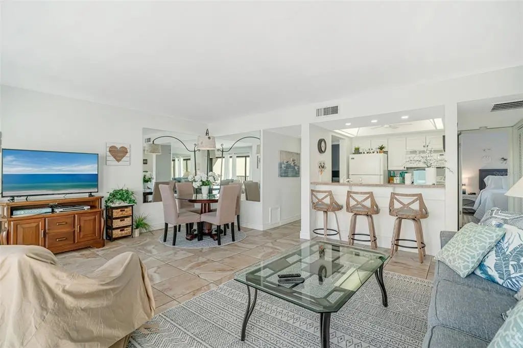 Welcome to the most adorable condo on world famous SIESTA KEY. Start enjoying the island lifestyle in this TURNKEY condo with great water and pool views! Very comfortable open floor plan with balcony to sip your cocktails and relax. The PRIVATE DEEDED BEACH ACCESS to the quartz sand Siesta beach in priceless. Midnight Cove offers tennis, pickleball, barbecue areas, fitness, pool, on site management, boat docks and more. Very importantly, there was no storm damage. Take the free trolley to Siesta Village or walk to the south village restaurants and shops. An excellent opportunity for your vacation getaway or investment property.