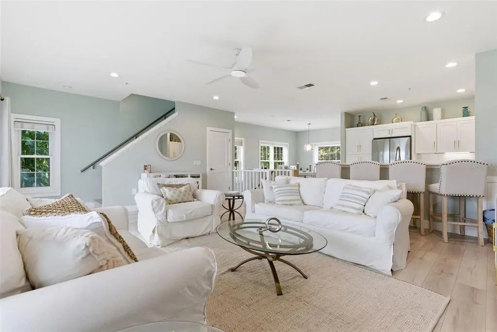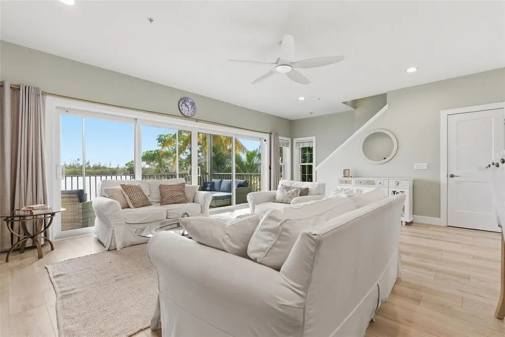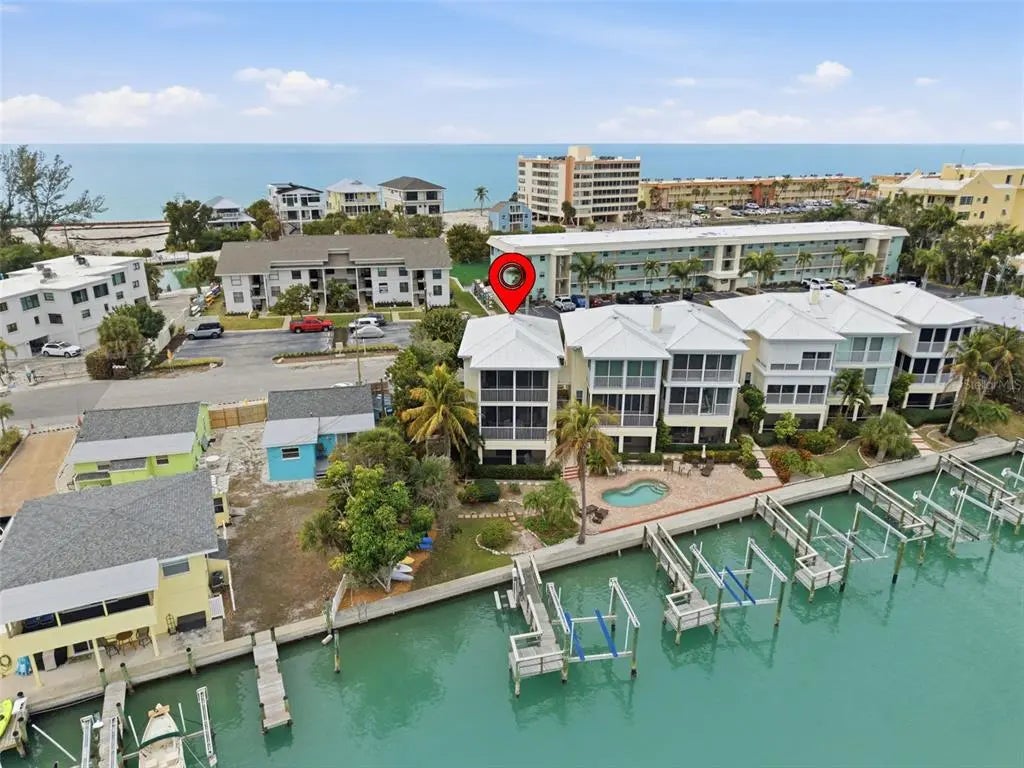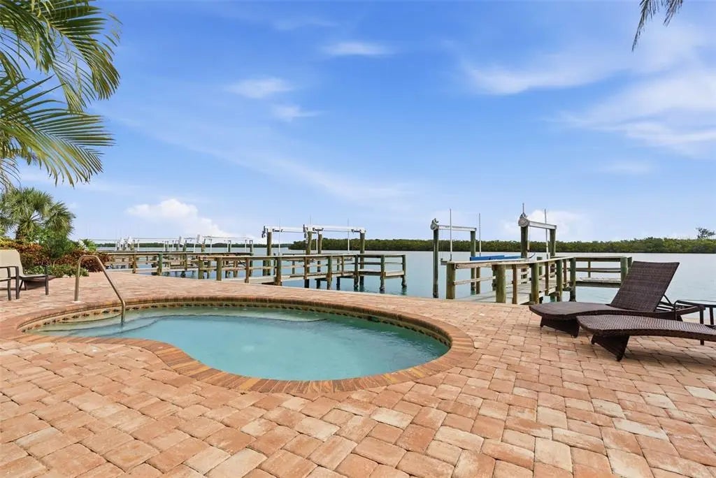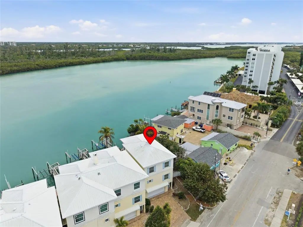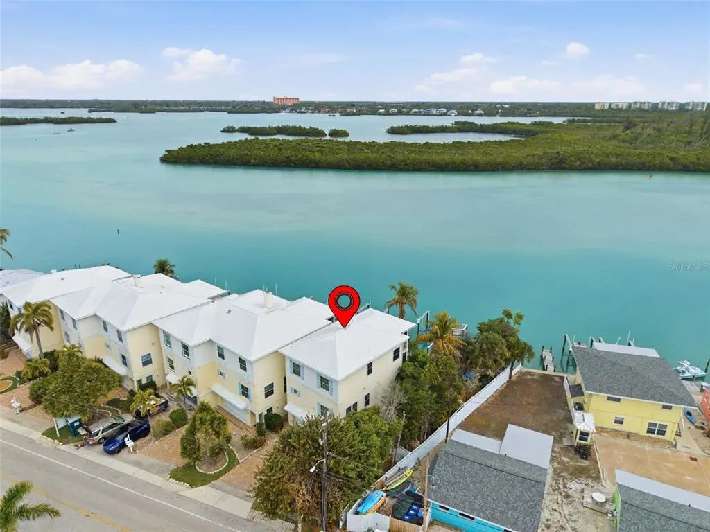 Under contract-accepting backup offers. Completely remodeled in 2025, this exceptional end-unit waterfront townhome on the quiet south end of Siesta Key offers spectacular panoramic water views and breathtaking sunrises with direct access to the Intracoastal Waterway and no fixed bridges to the Gulf. Boating enthusiasts will appreciate close Gulf access through the newly reopened Midnight Pass. Located in Siesta Bayside South, an exclusive six-unit waterfront community, this is one of only two residences without a shared common wall, offering enhanced privacy. Three levels provide three distinct water perspectives — from the backyard waterfront setting, to the main living balcony, and from the private primary suite lanai — each capturing beautiful, ever-changing views of the Jim Neville Marine Preserve. The thoughtfully redesigned interior features all-new appliances including washer and dryer, upgraded lighting throughout, a whole-house water purification system, water softener (2023), central vacuum system, and spa-inspired bathrooms with rain shower heads and handheld sprays. The main living area opens to an oversized screened balcony ideal for entertaining, while the primary suite features a private 18’ x 10’ screened lanai. Boaters will appreciate the private dock with 10,000-lb lift, deep water, and new docks currently being installed. Additional amenities include a waterfront community pool and direct access from the ground-level screened lanai — perfect for grilling and relaxed waterfront living. The oversized two-car garage offers generous storage for water toys and beach gear. Most furnishings are available under separate agreement, offering the opportunity for a turnkey transition. Just ½ mile from Turtle Beach, this pet-friendly community allows 3-month minimum rentals, making it ideal as a primary residence, second home, or investment. A rare opportunity to own a fully renovated, private waterfront residence in one of Siesta Key’s most serene locations.