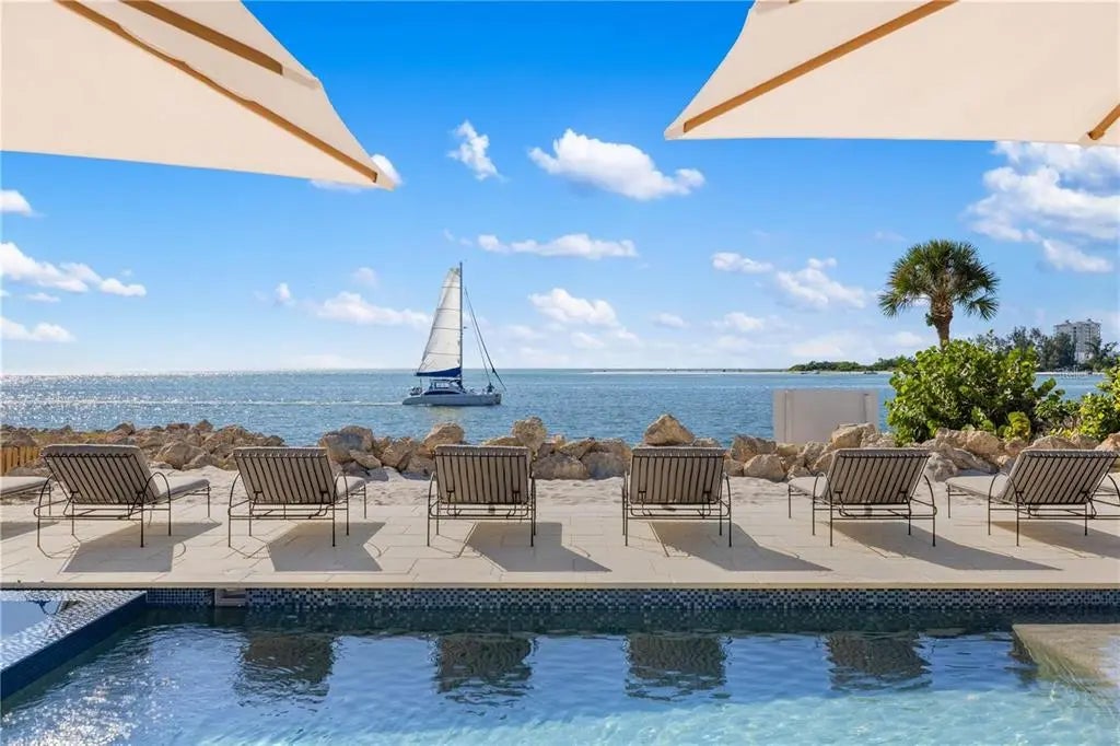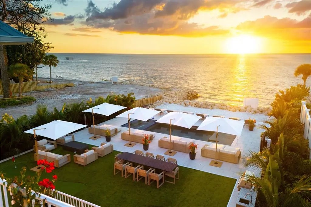 Under contract-accepting backup offers. Experience private beachfront coastal luxury at this one-of-one Siesta Key home, thoughtfully curated for comfort, style, and entertainment - by Pham Development. Perfectly positioned off the Gulf, with gorgeous ocean views throughout the rooms - you can watch a world-class sunset view from your master bedroom. Spanning over 6,468 square feet under air and 9,080 total square feet, this exquisite residence captures the essence of resort-style waterfront living on more than half an acre of pristine Gulf-front land. Be at ease with a surrounding elevated riprap shoreline and the imported rocks, offering both protection and privacy. Pull into the property through the gated entry, with a paved driveway for ample parking. The ground level offers a 3-car garage, spacious private fitness studio with AC, large flex space/storage room, and huge game room that leads out to the truly special backyard - with premium turf, silica sand and a putting area. Host a sunset dinner with the full outdoor kitchen, including a freezer, wet bar, beverage center, ice machine, and 6-burner grill. Have a drink while sitting in the pool facing the ocean, relax in the champagne spa hot tub, or tan on the sun shelf. Put your toes in the sand area of the backyard, or take the paver steps down to the private beach and swim in the ocean - the ultimate paradise. Wake up to the panoramic views of the Gulf of America and Sarasota Bay, that create a daily masterpiece of color and light, and have a coffee on the master bedroom's private balcony. With 6 bedrooms, 5 full bathrooms, and 2 half baths, you can host more family and guests - along with the second living room/media room. All of the bedrooms have custom built-in closets, and the spacious ocean-view master bathroom leads to two spacious walk-in closets. The home features high-ceilings, beautiful hardwood flooring throughout, and cypress beams. The living and dining room area have a fireplace, and the open-floor plan leads out to another large balcony overlooking the ocean. Enjoy the gourmet custom kitchen with Thermador gas appliances, a walk-in pantry, and an extra large quartz island with seating. An elevator connects the 3-level home through the grand living spaces that flow seamlessly toward the water, blending indoor sophistication with the beauty of the coast. The lush tropical landscaping evokes the serenity of a private resort. Located just minutes from Siesta Beach, the Village, and the North Siesta Bridge, this rare coastal jewel offers the ultimate combination of elegance, exclusivity, and Gulf-front tranquility—a move-in ready residence truly without equal on Siesta Key. Please go to our Youtube link and see the video of this gorgeous property: https://youtu.be/qv5Iljf5d5U?si=dTNKY3LAuFQH6xBc