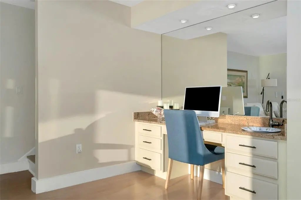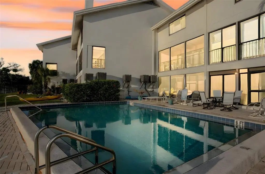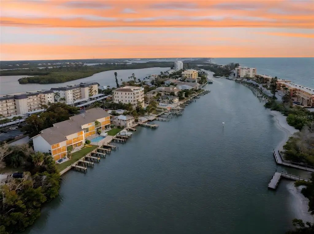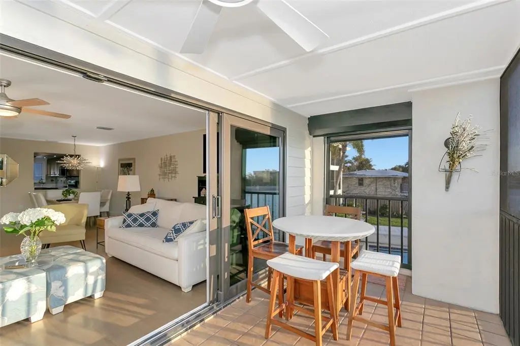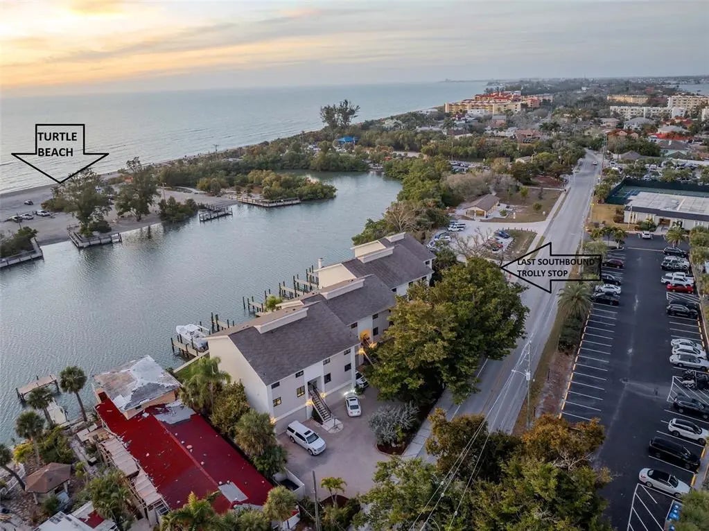 Unique among others for sale on Siesta Key, this 3-bedroom waterfront condo, located on the quiet south end of the island, offers: • Full Views of the Gulf, Blind Pass Lagoon (which connects to the Intracoastal Waterway, the ICW) and Turtle Beach • Two screened porches facing the Gulf from different levels • An easy 5-minute walk through a park to Turtle Beach • A heated waterfront pool steps from the back door • The use of a boat slip and kayak launch directly behind the unit, with direct access to the ICW • A 10-minute boat ride from the slip to the Gulf via Midnight Pass • Living in a quiet area that feels more “residential”, but is within walking distance of 2 waterfront restaurants and only minutes by car or trolley to shopping, restaurants, and entertainment in Siesta Key Village • A back yard lawn and patio • Kayaking in the lagoon and ICW • Fishing in the lagoon from the backyard or community piers directly behind the unit • A pet-friendly environment • A wood-burning fireplace • An oversized 2-car garage with inside access to the unit • A soundproof townhome with no neighbors above or below You will be mesmerized by water views and sunsets from every level of the home and from almost every room in the home. Enjoy spotting pelicans, herons, ibis, jumping fish, and an occasional dolphin or manatee. This 7-unit community, “Turtle Cove”, features the use of 7 equal boat slips, to which lifts could be added. Mature foliage blocks the eastward views of neighboring buildings. The expansive windows and sliding doors are impact-resistant throughout. There is a large, screened, covered porch on the main floor with wall-to-wall windows and sliding doors. The eat-in kitchen is large, bright, and equipped with stainless steel appliances and a convenient pass-through to the dining room. The bedrooms are graced with cork flooring, which is beautiful, quiet, and comfortable. The primary suite faces west with a private, screened porch where you will enjoy sunsets over the Gulf and beautiful reflections on the lagoon. The primary en-suite bathroom features twin sinks, a walk-in shower, and a garden tub. All 3 bathrooms have granite countertops. The primary bedroom and second bedroom have walk-in closets. All bedroom closets are fitted with Closet-Tec fixtures. The third bedroom features 2 single Murphy beds, each complete when opened with dimmable overhead lighting and a power outlet perfect for charging devices while you sleep. The laundry closet is conveniently located near the 3 bedrooms. The downstairs is stunning, with bright light and wall-to-wall impact glass windows and sliding doors to the patio. The 2-car garage is larger than most at 22’ x 24’. A lift (elevator) could be installed in this unit. The location is ideal: a quiet, residential area just 10 minutes from the Stickney Point bridge to the mainland, within walking distance of restaurants, and adjacent to the final, southbound stop of the Siesta Key trolley, a free ride from your home to Siesta Key Village and its shopping, dining, and entertainment venues.