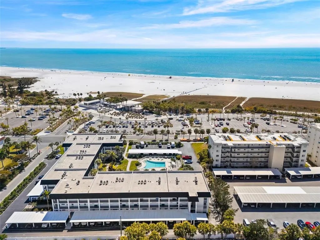 This newly listed condominium presents a distinguished opportunity to own a fully furnished residence directly across the street from the number one ranked beach in the world. Situated across the street from Siesta Key public beach, this property offers an exceptional blend of coastal elegance and investment potential. The two-bedroom, two-bathroom split floor plan provides both privacy and functionality, complemented by easy-to-maintain tile flooring throughout. The screened lanai serves as the true centerpiece, offering breathtaking westerly sunset views over the beach and the heated community pool below, maintained at a comfortable eighty-five degrees for year-round enjoyment. For those seeking rental income, this property is ideally positioned within an established monthly rental program. Its remarkable proximity to the beach, dining, and shopping in both the North and South Siesta Villages makes it a consistently sought-after destination for vacationers throughout the year. The surrounding environment is nothing short of extraordinary. A short stroll leads to the pavilion and the warm, crystal-clear waters of the Gulf of Mexico. Nearby Phillippi Estate Park offers additional green space, while Morton's Siesta Market provides convenient grocery access just minutes away. Community amenities further elevate the ownership experience, including a full kitchen in the community room for entertaining, saunas in the common areas, gas grills in the pool area, and one covered assigned parking space. This meticulously maintained complex reflects genuine pride of ownership at every turn. Whether envisioned as a personal beach retreat or a productive investment property, this residence warrants your immediate attention. Schedule a private showing today.
