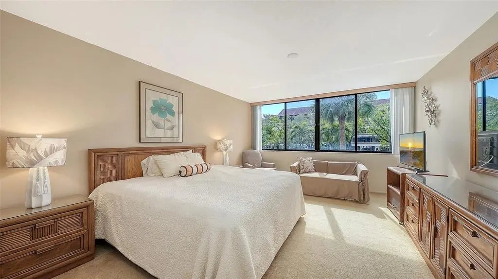 Welcome to your sunny slice of paradise on Siesta Key. This bright and inviting south-facing condominium offers a great opportunity to enjoy island living just near the world-famous white quartz sand of Siesta Beach. This generously sized two-bedroom, two-bath residence has been well maintained by its original owner and occasionally occupied. The desirable southern exposure fills the condominium with natural light throughout the day, creating an open and welcoming atmosphere. The interior has been recently painted, giving the home a fresh, clean look ready for your personal touches. The unit includes several updates, including a newer stack washer and dryer, newer air-conditioning system, plus energy-efficient LED lighting. The spacious layout provides comfortable living and dining areas along with a generously sized main bedroom en suite, making it ideal for year-round living, seasonal use or take advantage of the Excelsior on-site rental program with a two-week rental minimum. Convenience is key with under-building assigned parking as well as a private storage closet for beach chairs, umbrellas and other beach essentials. This bay-to-beach complex offers an easy distance across the street to the powdery sand and turquoise Gulf waters of internationally recognized Siesta Key Beach. Residents and renters enjoy an impressive array of resort-style amenities. The property features tennis and pickleball courts, beautifully maintained grounds, bayside grilling areas, and bayside and Gulf-side swimming pools. Whether you prefer relaxing by the water, enjoying sunset walks along the beach or staying active with outdoor recreation, this community offers something for everyone. With its prime location, bright southern exposure and access to outstanding amenities, this Siesta Key condominium presents a wonderful opportunity to own a piece of Florida’s sought-after coastal lifestyle.