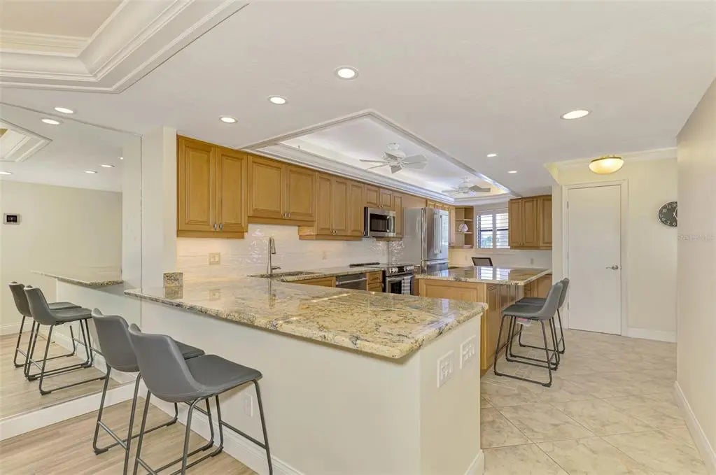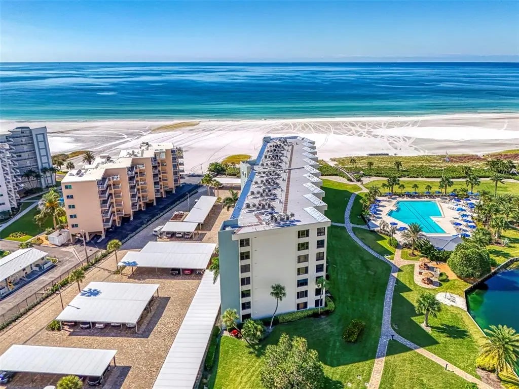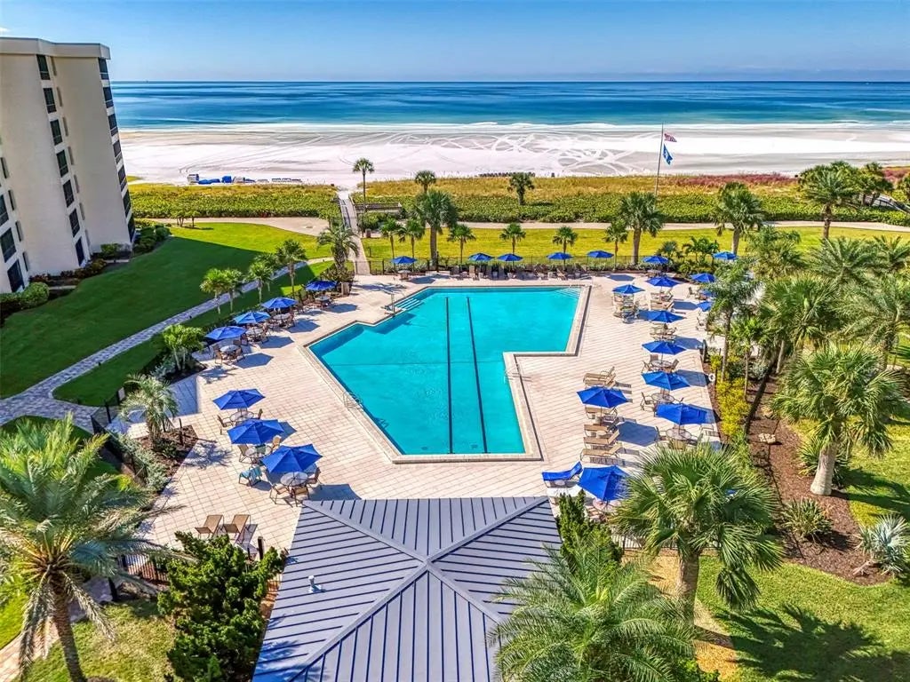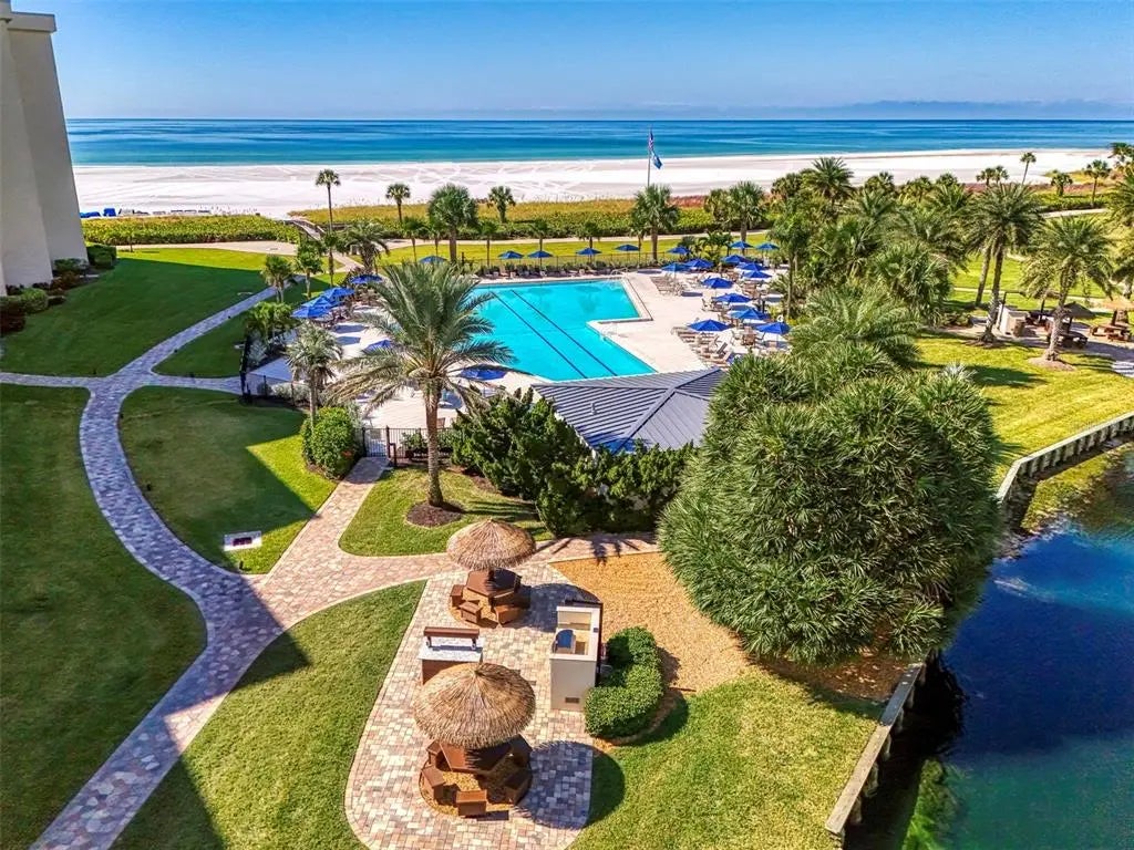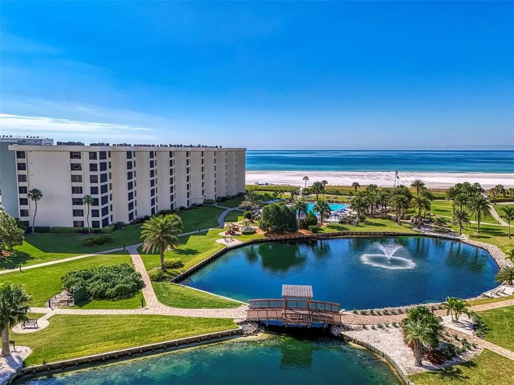 QUICK BEACH ACCESS! Welcome to highly sought-after "Building A" at the Gulf & Bay Club located on Siesta Key Beach! As you enter the gated community, you will feel like you've landed in paradise as you make your way down the brick paved streets to the building closest to the beach. Offered TURN-KEY FURNISHED, this nicely updated 2-bedroom, 2-bathroom condo located on the second floor offers quick and easy access to the amenities and is just steps to private beach access! From the moment you enter you'll be drawn to the incredible views of the beach, gulf, pool, pond and beautiful grounds of the community! The kitchen features a large island, breakfast bar, granite countertops, new appliances and plenty of cabinetry for storage. The open floor plan is great for entertaining. Comfortably sleeps 6 people. Both bathrooms have been beautifully updated. New wood flooring follows throughout with tile in the kitchen. The unit offers an inside laundry room and an owner’s storage closet for your beach toys! Enjoy several upgrades including ceiling fans in each room, crown molding, custom trim woodwork and more! Amenities include 32 pristine acres, 800 feet of private beach on Siesta Key, a lush Tropical courtyard with a freshwater lake, 3 large heated pools, outdoor barbecuing areas, 6 tennis courts including 1 Har-Tru court, pickleball, basketball, shuffleboard, 2 clubhouses, media center, pool table and TV’s, fitness center and more! Schedule a showing today!